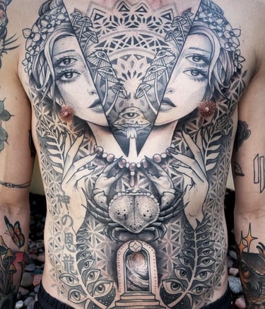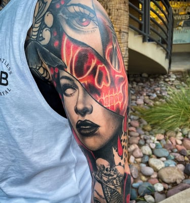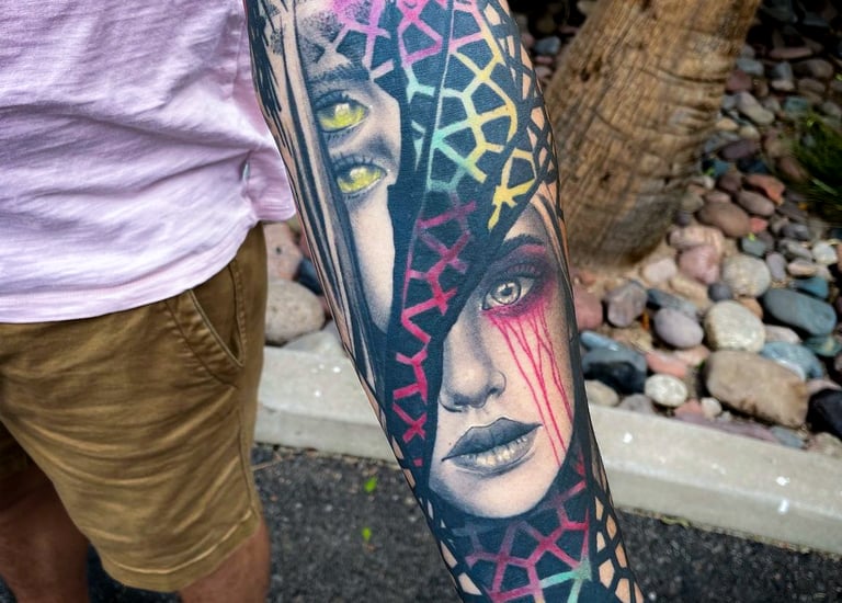With over 13 years of experience, I create custom tattoos that blend surrealism and geometric patterns, ensuring each piece is as unique as the individual wearing it.