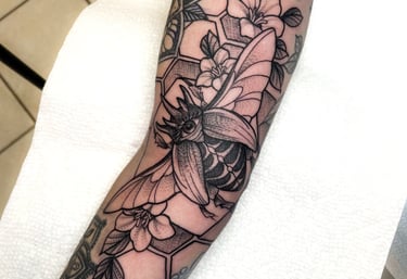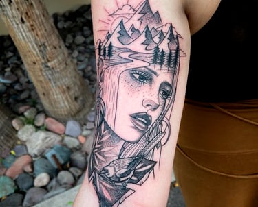 Explore my unique fusion of illustrative tattoo artistry and design.